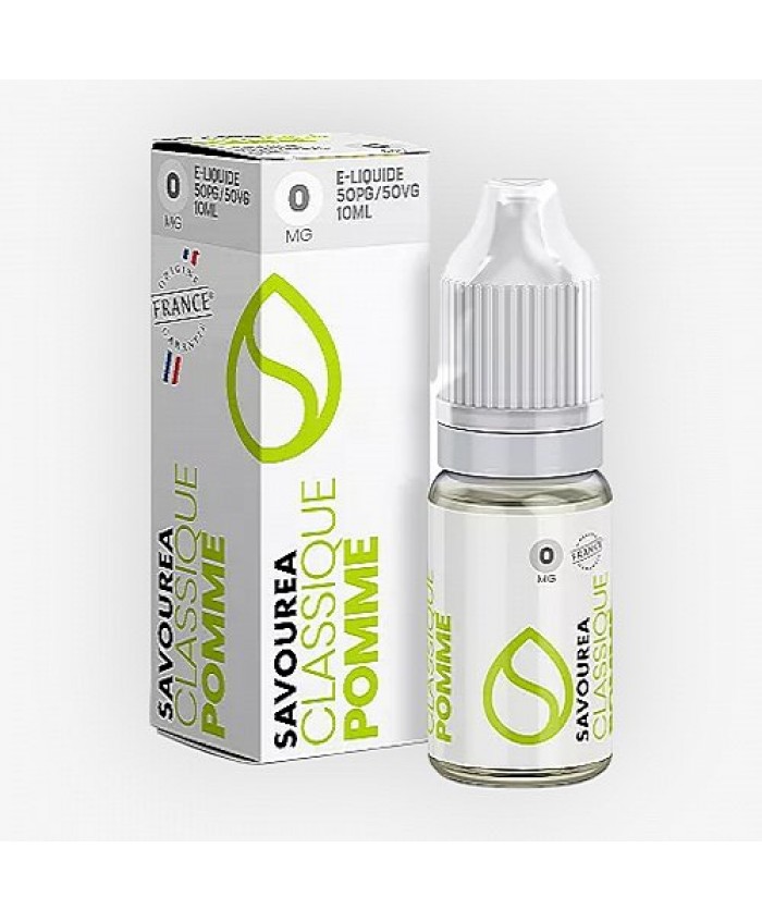 De plus, la marque Savourea n’utilise pour ses e-liquides que des arômes de qualité alimentaire naturels ou de synthèse dans son e-liquide Pomme.
